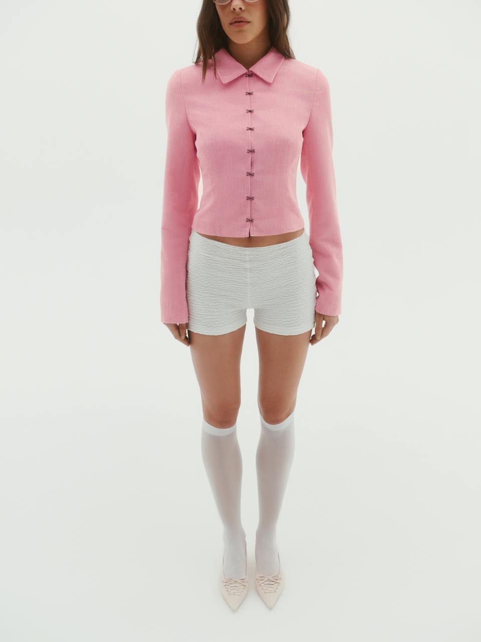 The Brown Velvet-Finish Fitted Jacket brings together structure, softness and a hint of modern detail. Its tailored silhouette gently follows the body, creating a clean, elegant shape, while the metal closures add a subtle accent that feels refined and contemporary.